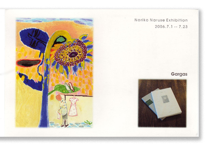 Lapin 新しくLapinさんをリンクさせて頂きました。とってもおしゃれなアクセサリ−! ![]() 成瀬憲子の5冊の本 2006年7月1日(土)〜7月23日(日) 昨年9月にガルガから発行された成瀬憲子さんの画集「10代の絵」に続き、 この7月に4冊の本が誕生します。「10代の絵」の続編ともいえる画集が 3冊と写真集が1冊です。今回は、その本たちと原画や、憲子さんの現在 の仕事でもあるぺラ本も展示します。どうぞ、お楽しみに! (ガルガさんのDMより) ガルガ 松本市深志3-10-26 TEL:0263-39-5556 | |||||||||